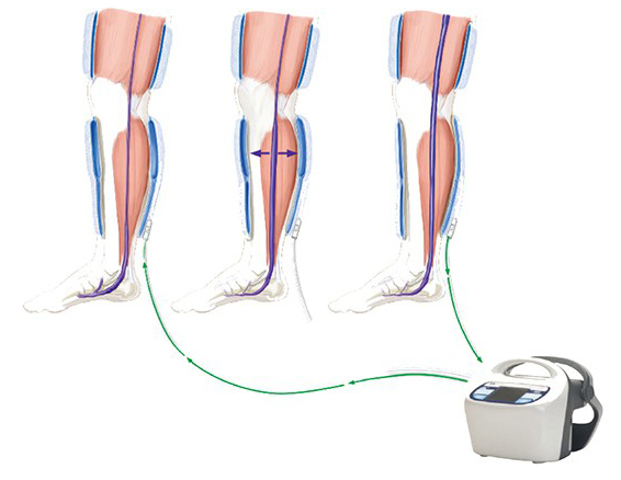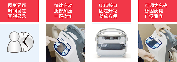 ②圓周壓力:通過充氣腿套對腿部進(jìn)行圓周壓力,有效清除靜脈瓣后血液瘀積;