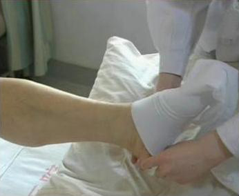 抗血栓壓力帶(醫(yī)用循序減壓彈力襪)在腳踝部建立最高支撐壓力,順著腿部向上逐漸遞減,在小腿肚減到最大壓力值的70%-90%,在大腿處減到最大壓力值的25%-45%。壓力的這種遞減變化可使下肢靜脈血回流,有效的緩解或改善下肢靜脈和靜脈瓣膜所承受壓力,減少腿部靜脈逆流和淤血。